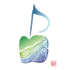 青森といえば林檎(りんご)。美味(おい)しい豊かな林檎を奏の象徴としました。林檎音符です。音符は、山と海と五線譜で描きました。