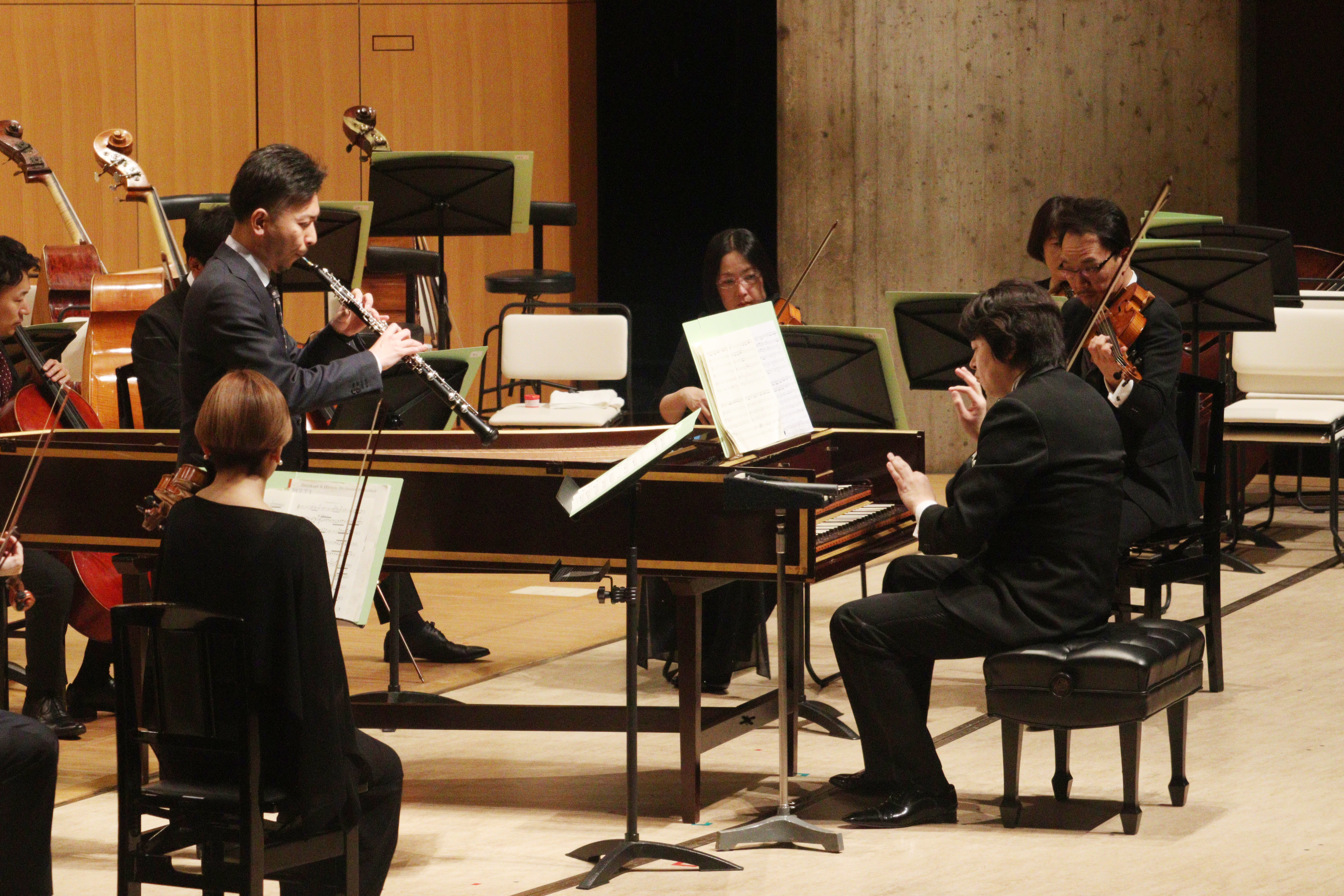 仙台フィルハーモニー管弦楽団の弘前公演でオーボエを演奏する西沢さん(左)=2024年6月、弘前市民会館(同楽団提供)