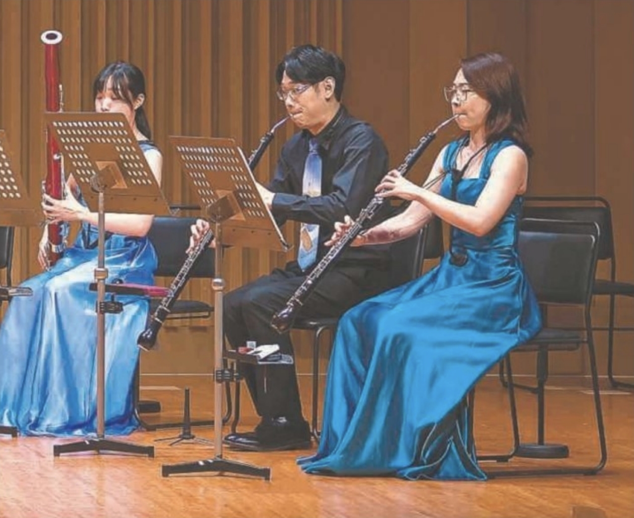 東京ダブルリード本舗の公演で演奏する戸田さん(右)=2024年8月、東京・銀座の王子ホール