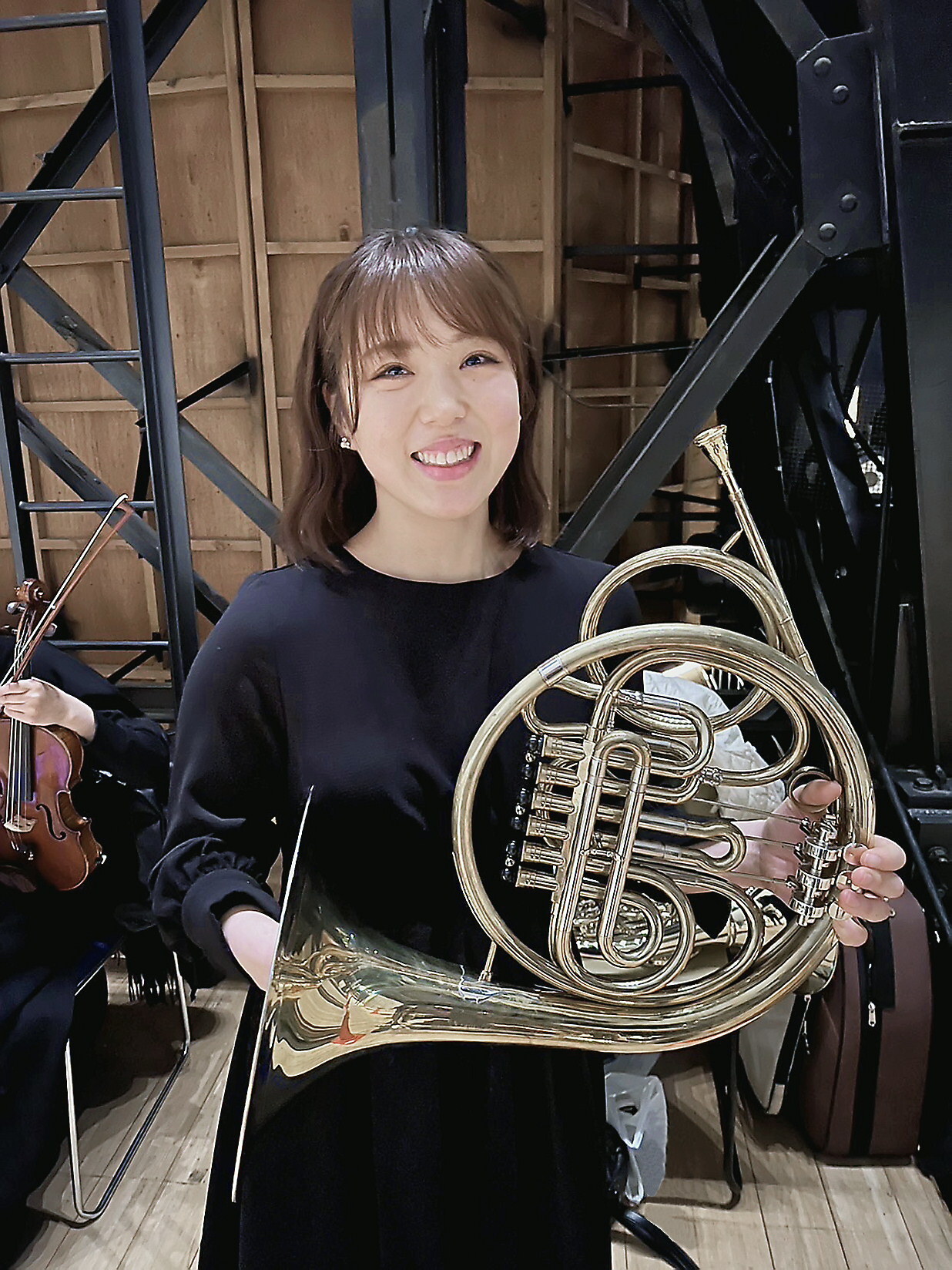 ホルンカルテットの演奏会に出演した鈴木さん=10月30日、東京・新大久保のスペースDo